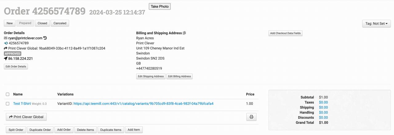 IMPORTANT: Before you can place an order please ensure you have connected your Order Desk account to the Print Clever Global App. For more information click here